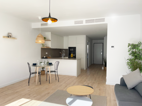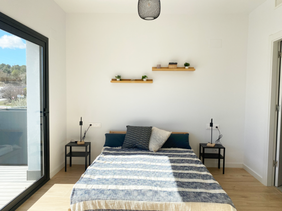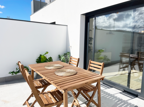 The houses consist of a kitchen-living room, 4 bedrooms, 3 bathrooms, 2 terraces, 1 balcony and laundry room. They also have a private garage with space for 2 cars.