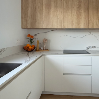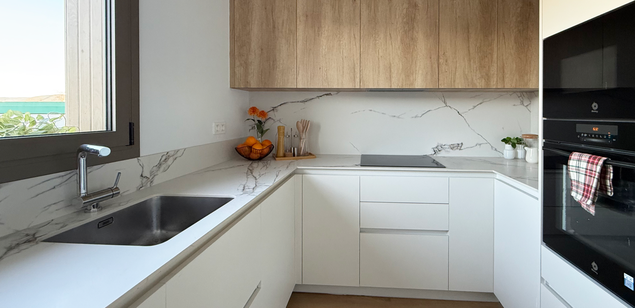 Ejemplo 1; Cocina blanca con contraste sutil